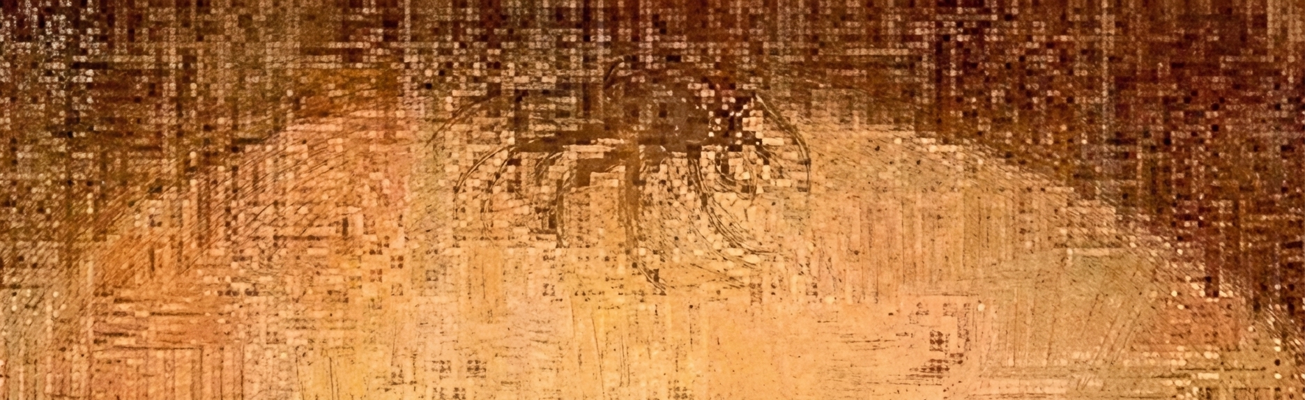 - La coloration de l’image n’est pas régulière et, sous grossissement, on aperçoit des irrégularités d’absorption du colorant dans les fibres et entre les fibres des fils de chaîne (sens de la longueur). Ces différences d’imprégnation des fils indiqueraient que la soie de byssus se prête moins bien à la décoration peinte que le tissu fabriqué avec des fils du vers à soie.