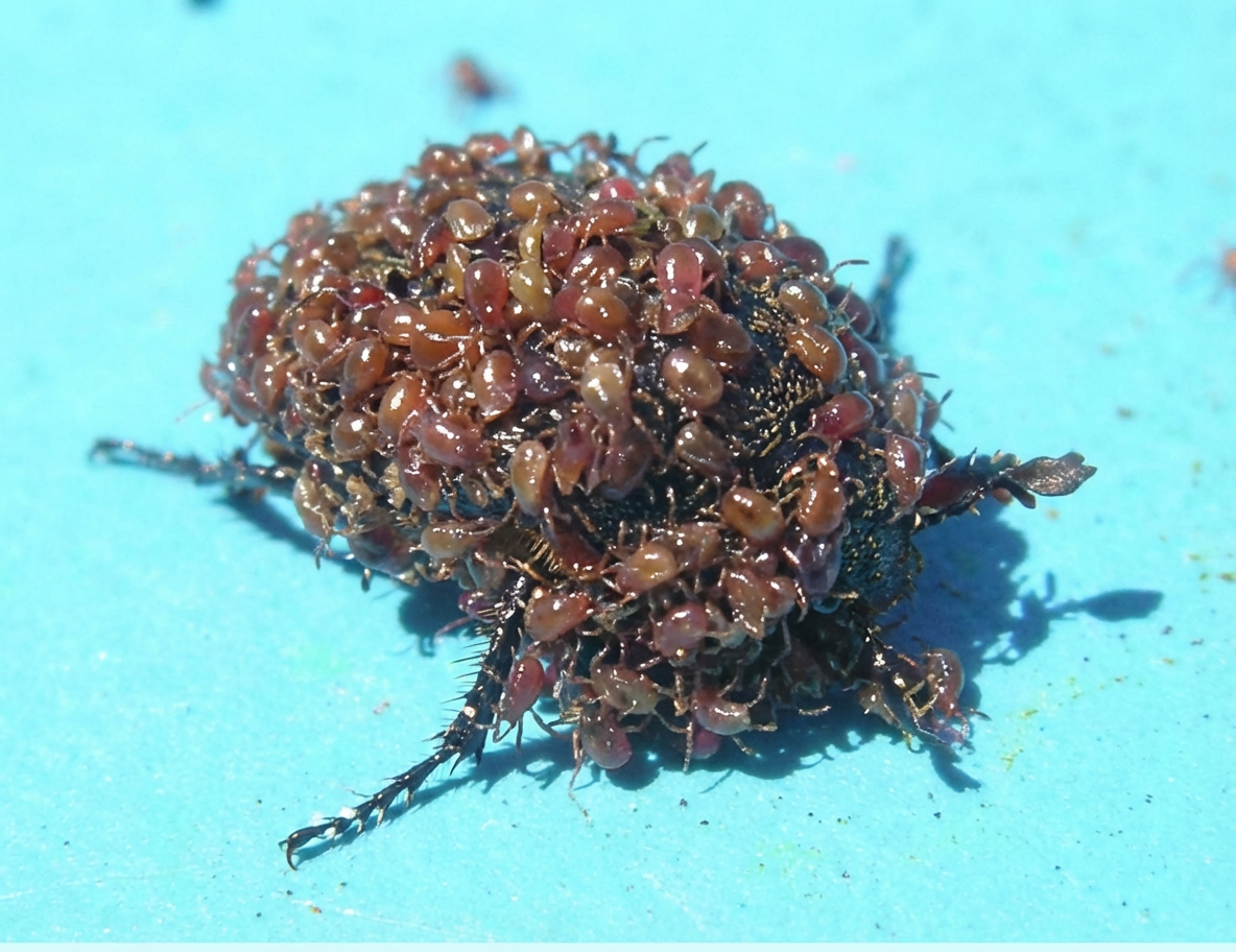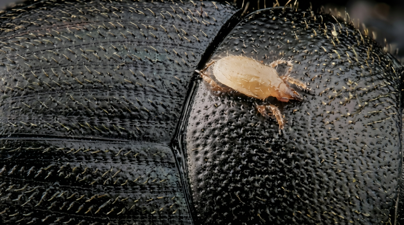 Acarien sur la cuticule d’un scarabée