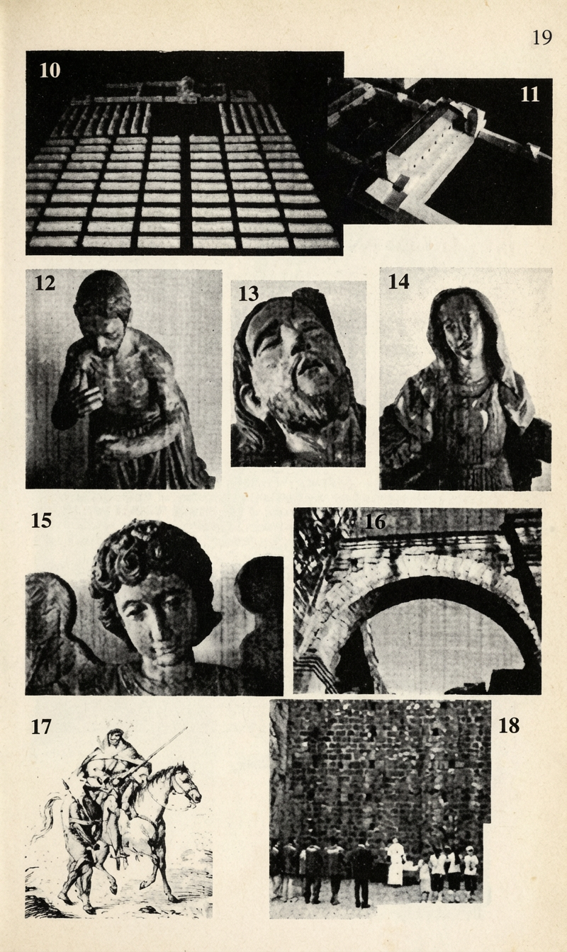 L’église était le seul luxe du village (illustration n°11). Les talents artistiques des guaranis, leurs aptitudes manuelles permirent l’édification de véritables chefs d’oeuvre en pierre taillée (illustration n° 16) ; l’autel majeur était doré, les calices ornés de pierres précieuses du Brésil, les cloches fondues en la réduction d’Apostoles avec le cuivre de la région. Les statues en bois peint étaient également réalisées par des sculpteurs indigènes, sous la direction des jésuites.