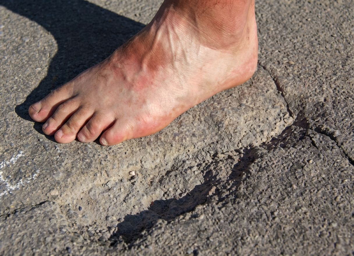 Fig. 1 : La photo montre le pied d’un homme actuel qui s’emboîte exactement dans l’une des empreintes de pied humain trouvées en 2005 à Cerro Toluquilla (Mexique) par Silvia Gonzalez.