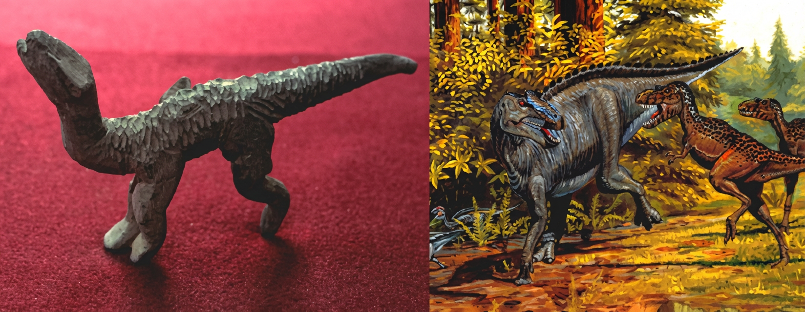 Fig. 1 Iguanodon (Figurine et représentation actuelle) :