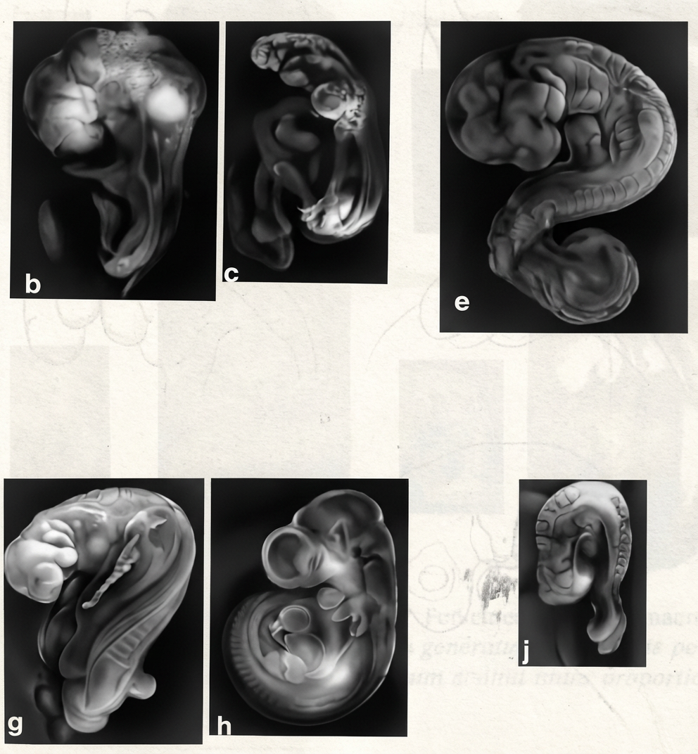 C’est que, depuis le travail de pionnier réalisé par von Baer en 1828 on a vu peu d’études comparatives un peu étendues sur le sujet. Il est en effet difficile de se procurer des embryons à des stades variés, hormis pour les espèces courantes en laboratoire (grenouilles, rats, poulets). De là tout l’intérêt des travaux menés par le Dr Richardson de 1989 à 1995.