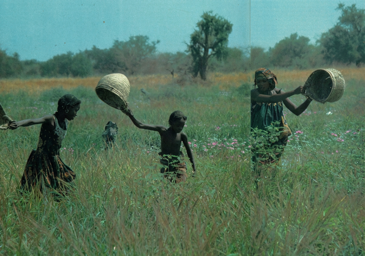 Fig. 3. Récolte du riz sauvage au Tchad, faite par les femmes et les enfants armés de paniers6.