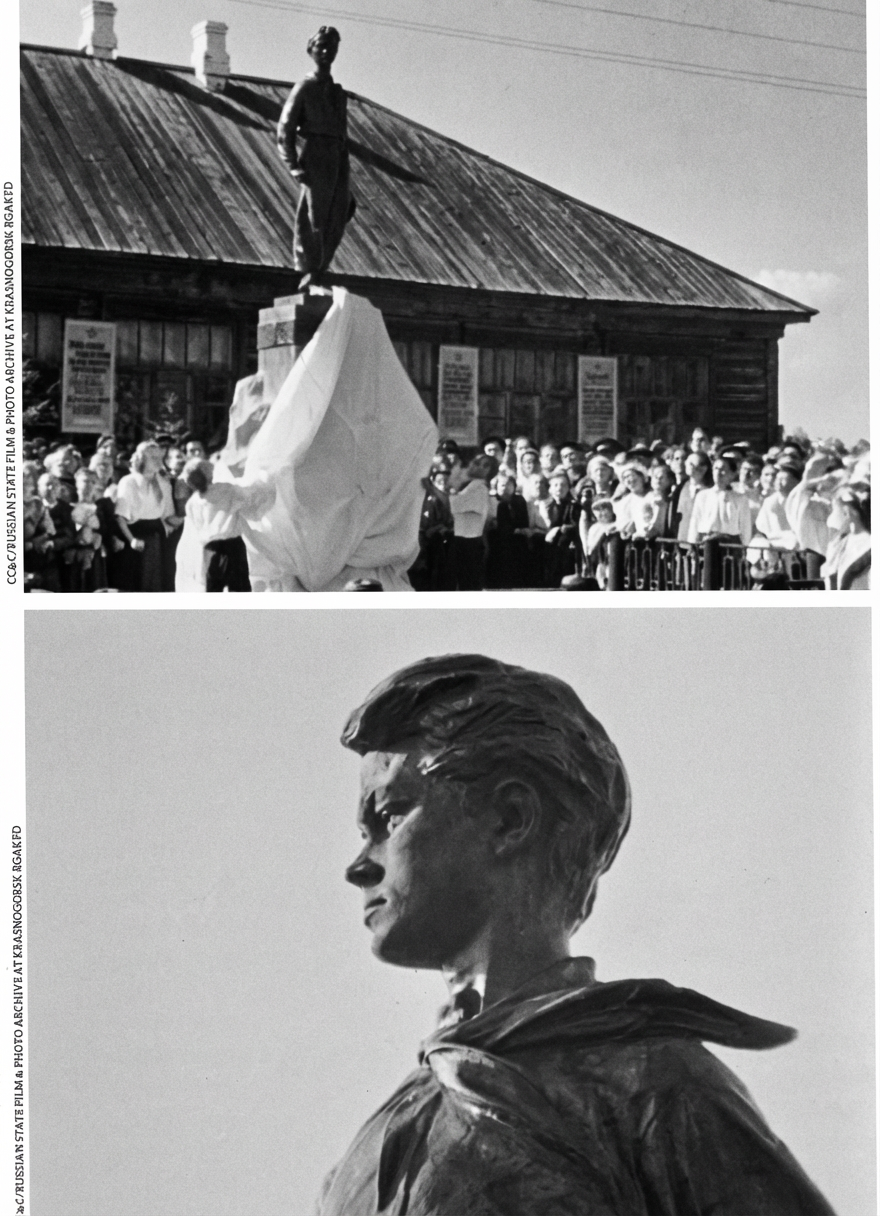Fig. 1. Dans les villages, des statues de Pavel Morozov glorifient celui qui est appelé « Pionnier-héros numéro 001 ». En rélité, il n’y avait pas de section de pionniers dans le village de Pavlik. (Source Paris-Match hors série « Staline. Terreur, guerre et propagande », octobre 2015)