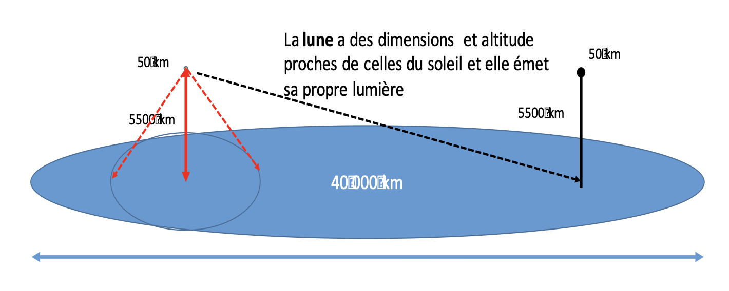 La lune a des dimensions et altitude proches de celles du soleil et elle émet sa propre lumière.