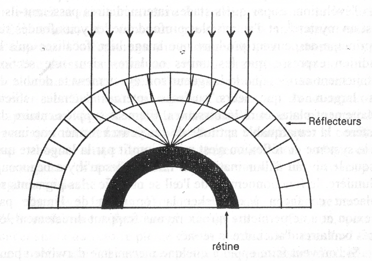 Si l’on veut faire appel à quelque mécanisme darwinien pour expliquer l’apparition de l’œil fondé sur la réflexion, on se heurte à de redoutables problèmes.