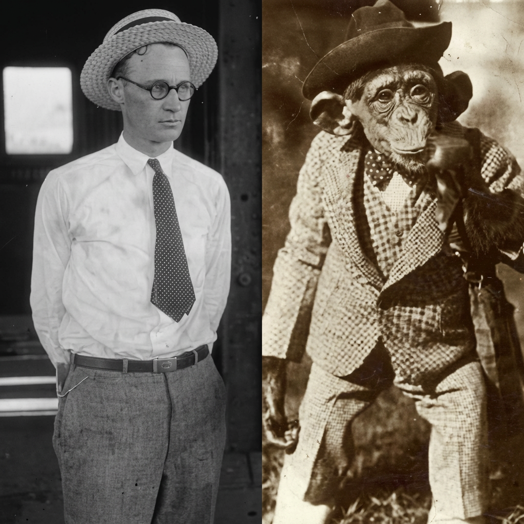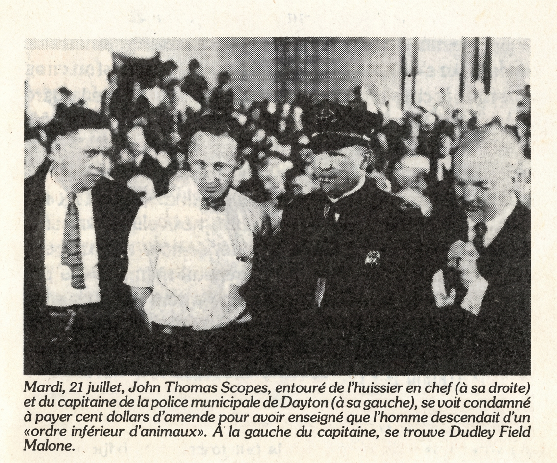 En 1925 à Dayton, dans l’État du Tennessee, eut lieu le fameux « procès du singe ». Ce n’était pas le jugement d’un quadrumane, bien qu’il y en eût deux en costume dans la ville.