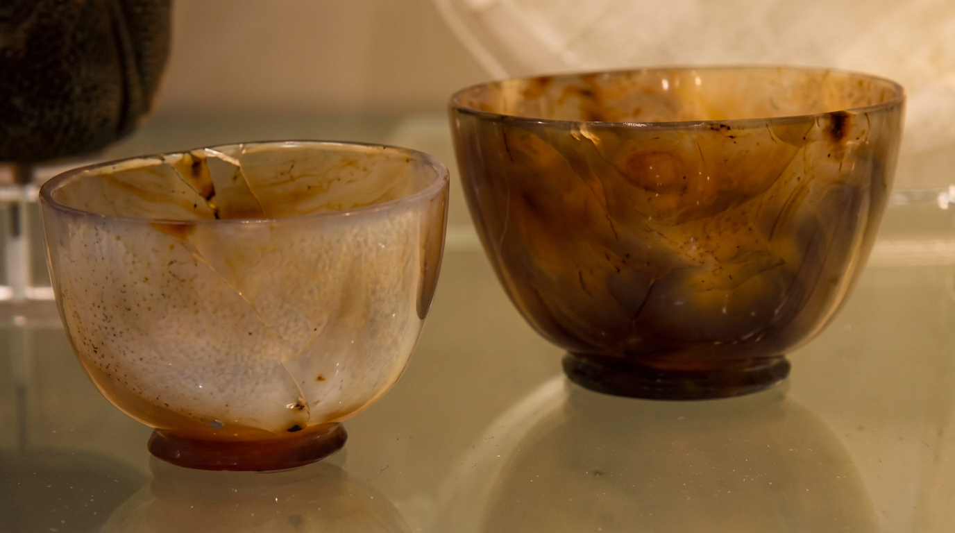 Pline écrit que les civilisations antiques étaient fières de posséder des coupes en pierres coûteuses ou précieuses ; elles nous transmirent leur art de donner davantage de clarté et de luminosité aux objets en agate à l’aide d’huile et d’acide sulfurique. Il est patent que les ateliers orientaux d’Égypte et de Syrie, depuis Alexandrie jusqu’à Antioche, réalisèrent de nombreux vases de pierre fine de la dureté du jaspe, de la calcédoine, de l’agate et de la sardoine.