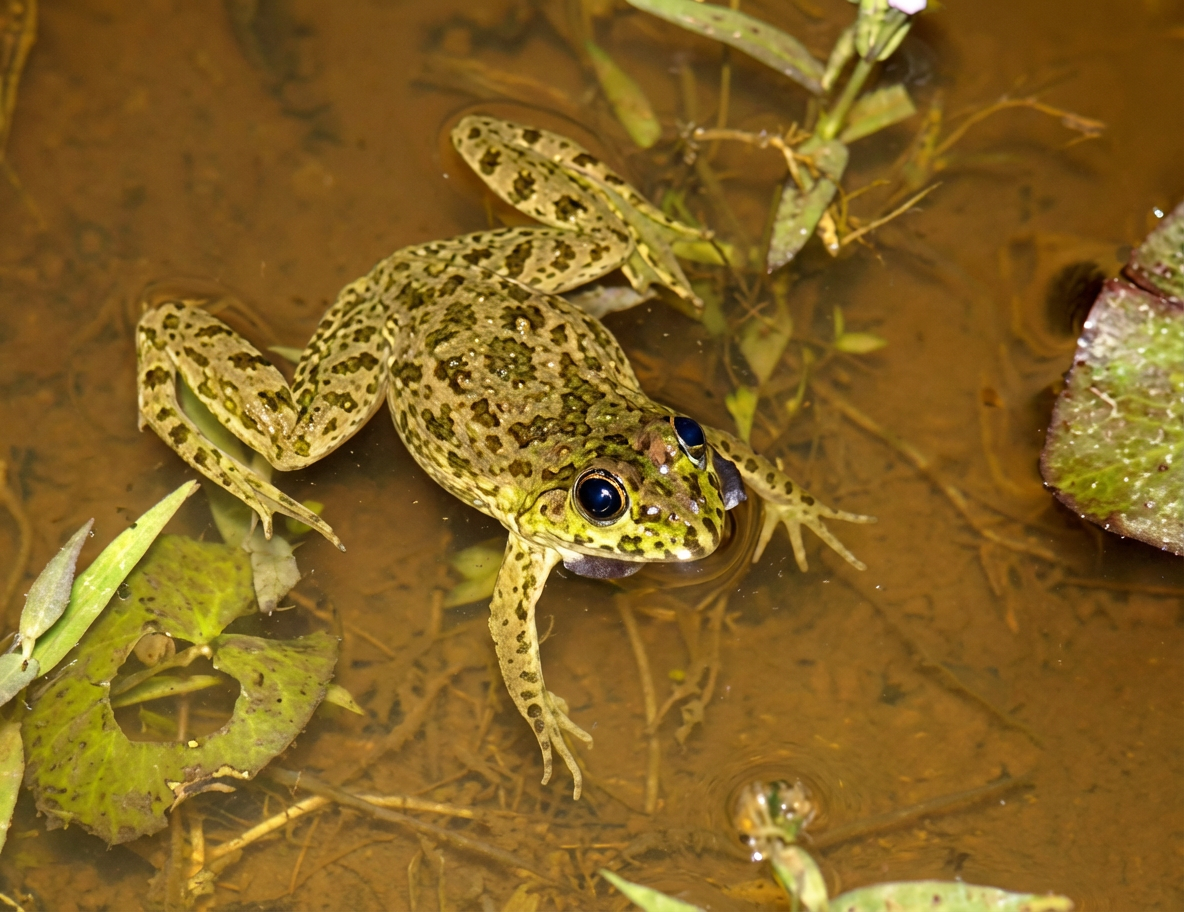 La toute petite Rainette grillon (Acris crepitans) peut traverser une mare avec une série de courts sauts rapides à la surface de l’eau.