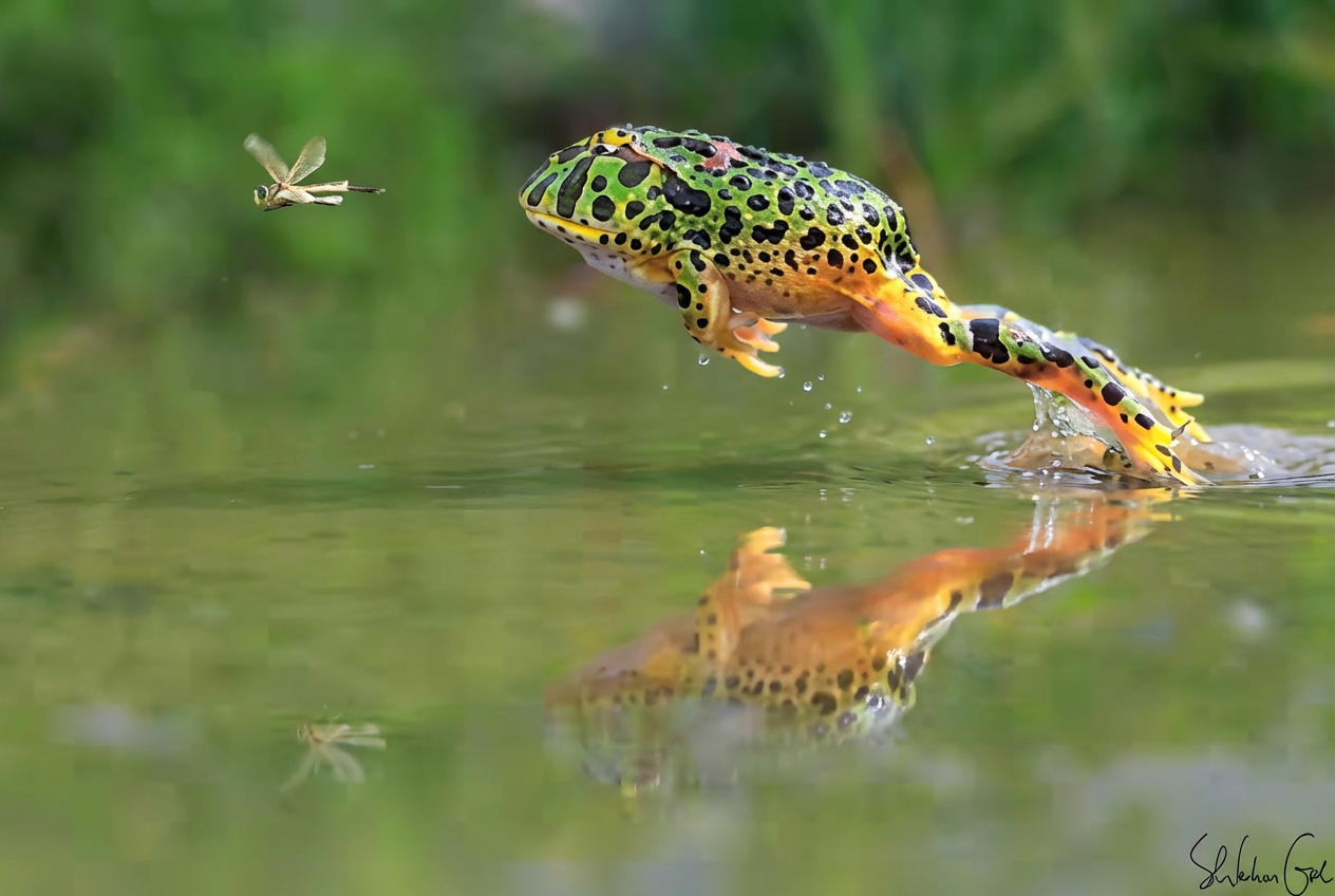 Euphlyctis cyanophlyctis a la capacité de sauter en dehors de l’eau à partir d’une position flottante à la surface.