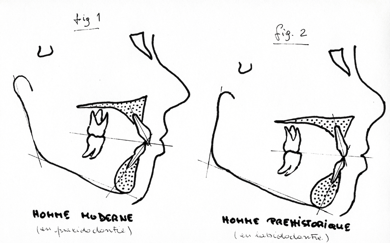 On peut, en effet, constater que les incisives supérieures et inférieures se croisent de plus en plus souvent, ce qui serait le signe d’une réduction de la taille de la mâchoire, alors que chez l’homme préhistorique, le croisement était quasiment nul (en labidodontie ou bout à bout incisif- fig.1) 8.