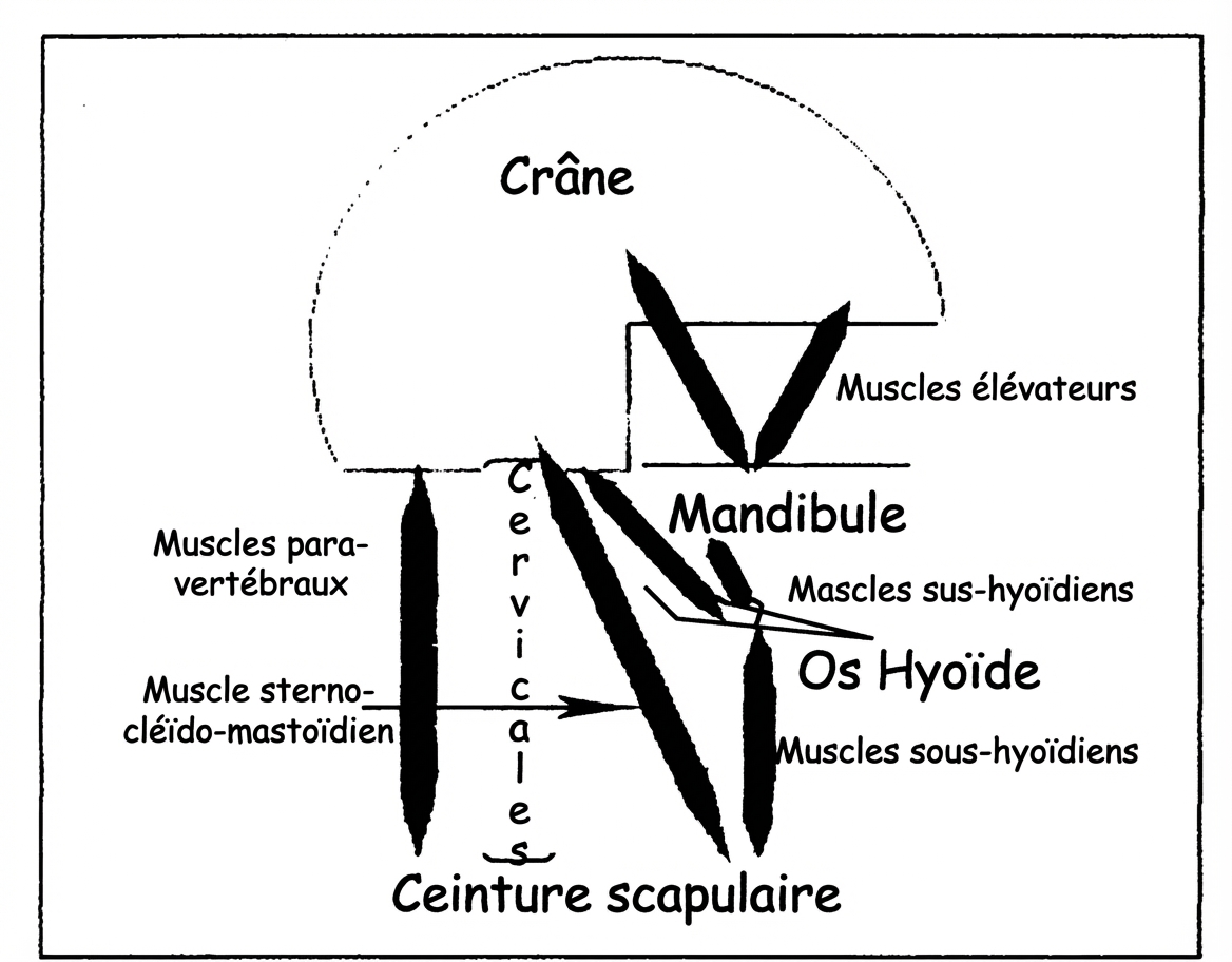 Il existe une liaison d’équilibre entre la mandibule et l’ensemble musculaire du corps.