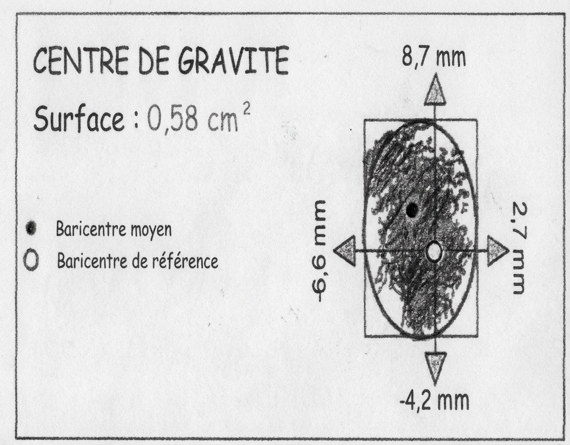 Examen stabilométrique sans gouttière : le centre de gravité se trouve décalé par dysfonctionnement de la mandibule