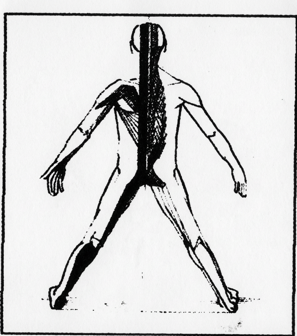 Tel un mât vertical sans assise, l’être humain ne tient en équilibre que grâce à une série de capteurs qui agissent sur deux séries de chaînes musculaires, l’une arrière, extrêmement puissante, l’autre avant, plus faible et régulatrice.