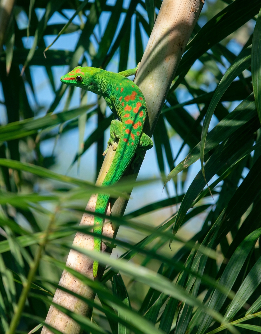 La plupart du temps, en effet, la livrée des geckos est obtenue grâce à une couche d’iridophores elle-même couverte par une couche de cellules contenant des pigments classiques, les chromatophores. Ainsi, le vert du Phelsuma grandis est en réalité le résultat de la combinaison d’un bleu structural et d’un jaune pigmentaire…