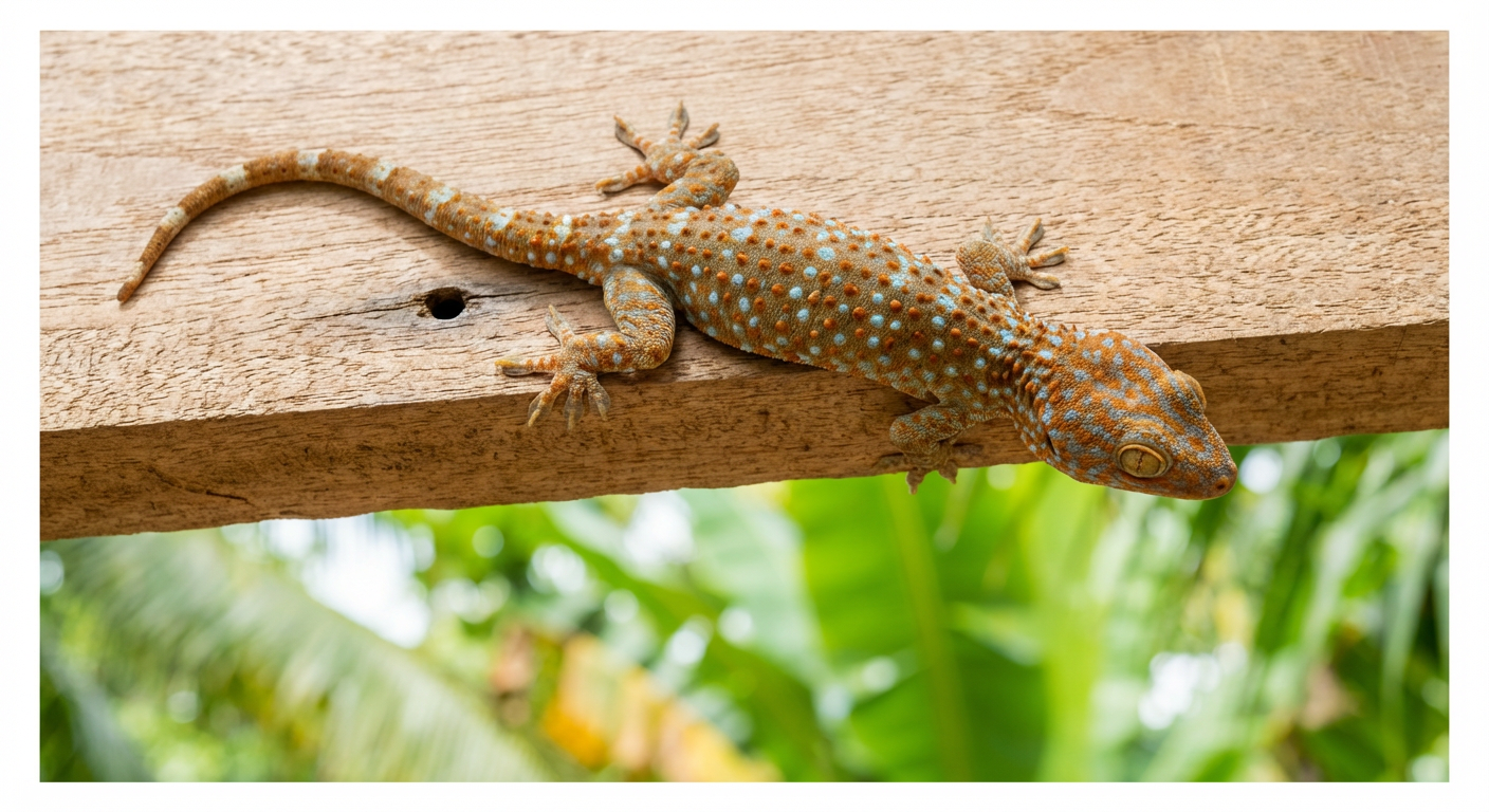 Je dois mon nom à un lieu géographique mais ce n’est pas le cas de tous les Geckos. Mon cousin, Gekko gekko, qui, avec ses 35 à 40 cm, est le plus grand et surtout le plus gros de tous les Geckonidés [Rhacodactylus leachianus, à droite, ou Gecko géant de Nouvelle-Calédonie, une espèce de geckos de la famille des Diplodactylidæ, lui dispute ce palmarès], est, lui, appelé Tokay en raison du cri qu’il pousse la nuit dans les habitations d’Asie tropicale.