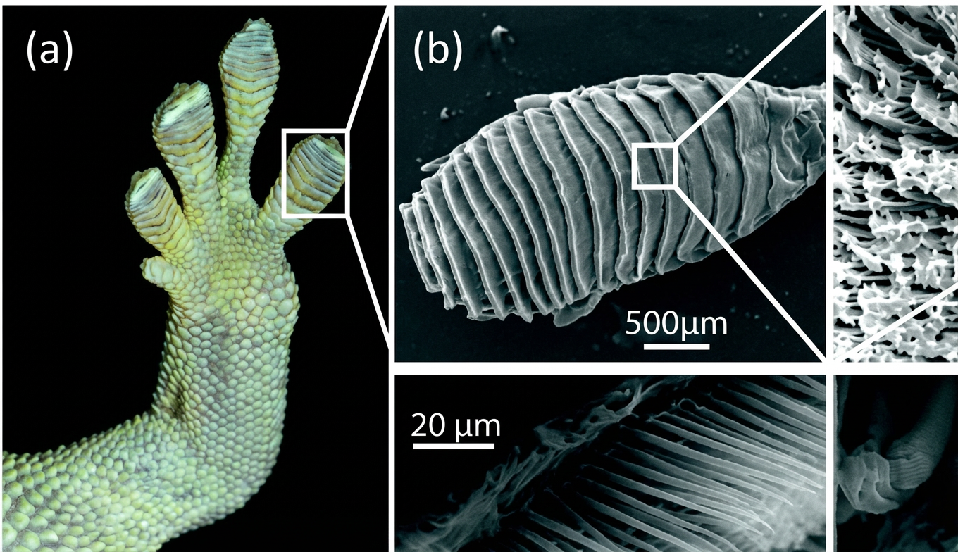 Les microscopes ont indiqué qu’en réalité, les lamelles sous-digitales des Geckonidés, souvent dilatées en coussinets, sont constituées par des plaques dont chacune porte une multitude de « poils cuticulaires », en forme de crochets, longs de 100 à 120 millièmes de millimètre.