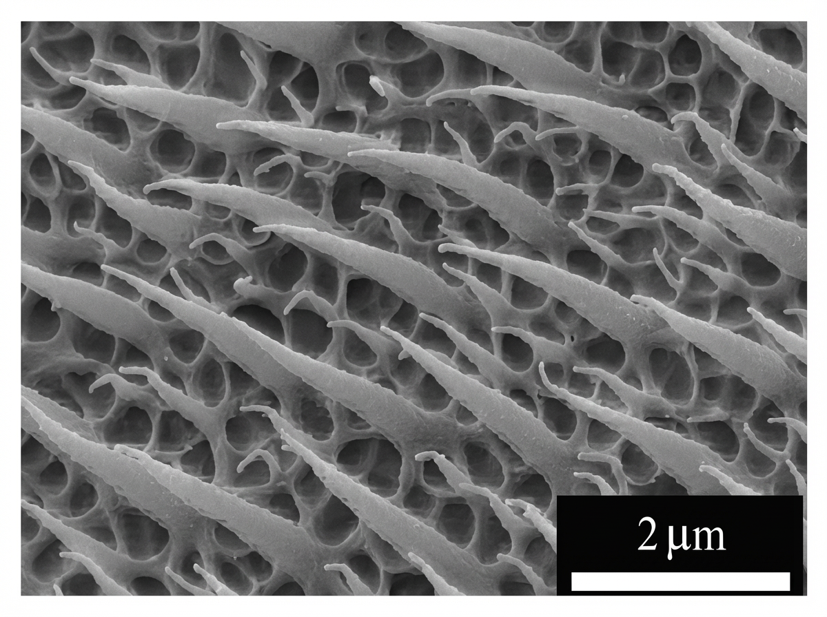La conception unique des poils ou spinules conférerait une action antimicrobienne profonde : elle aurait une propriété antibactérienne, tuant les bactéries à Gram négatif (Porphyromonas gingivalis) quand elles entrent en contact avec la peau [Green et al., 2017].