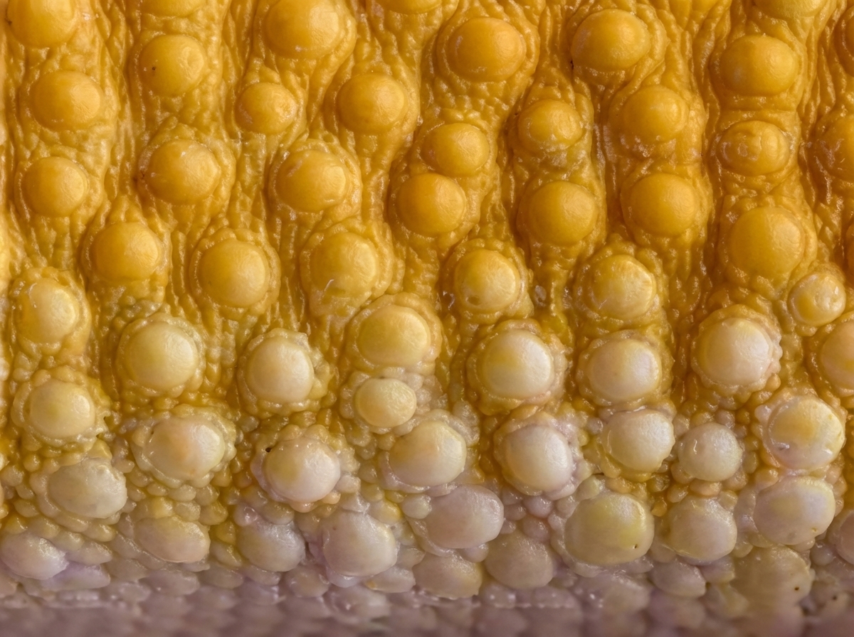 La peau de mon dos et de mes flancs montre une forte concentration de chromatophores, parmi lesquels : des mélanophores bruns/noirs contenant de la mélanine ; des xanthophores colorés en jaune par la présence de pigments de ptéridine ; des iridophores qui génèrent de la couleur en raison des propriétés structurelles réfléchissant la lumière des plaquettes de purine qu’elles contiennent, alors que, dans la région de transition flanc-arrière, la microscopie électronique révèle la présence de terminaisons nerveuses [D. Fulgione et al., 2018].